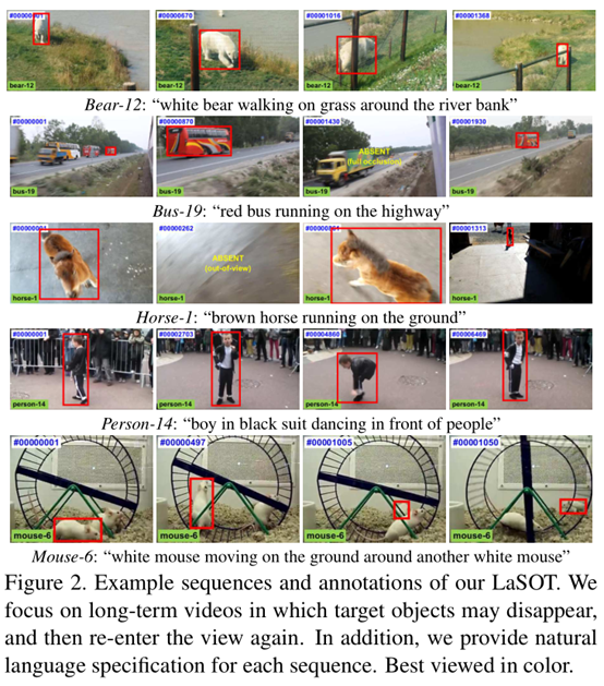 此外,还看到了一篇数据库的,LaSOT7 致力于解决目前的目标追踪数据集存在的规模小,追踪时间短,类别偏见(类别数量不平衡)问题。这个数据集包含这个数据集包含 1400 个视频,70 个类别。其中,最短的视频包含 1000 帧(即 33 秒),最长的视频包含 11397 帧(即 378 秒)。